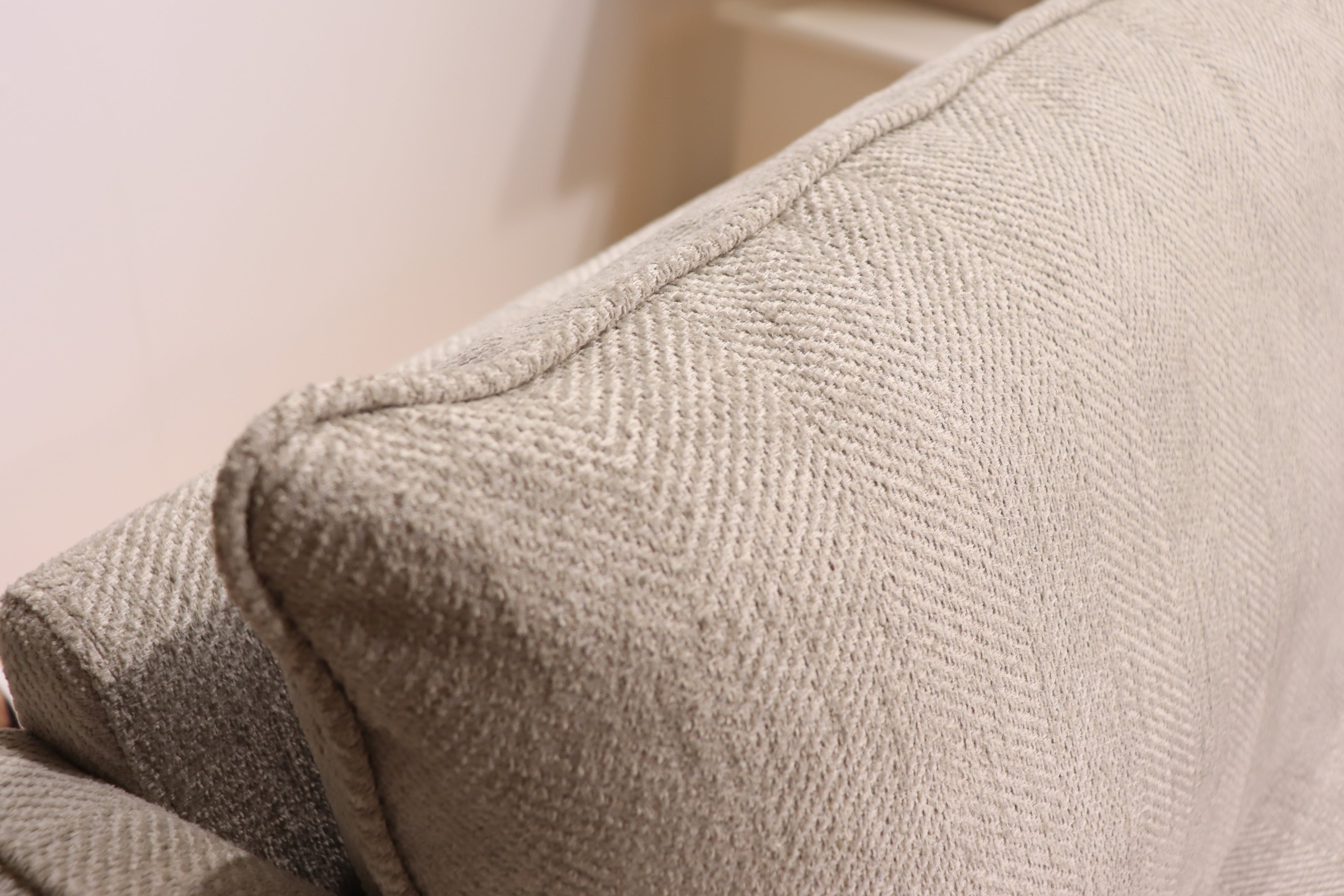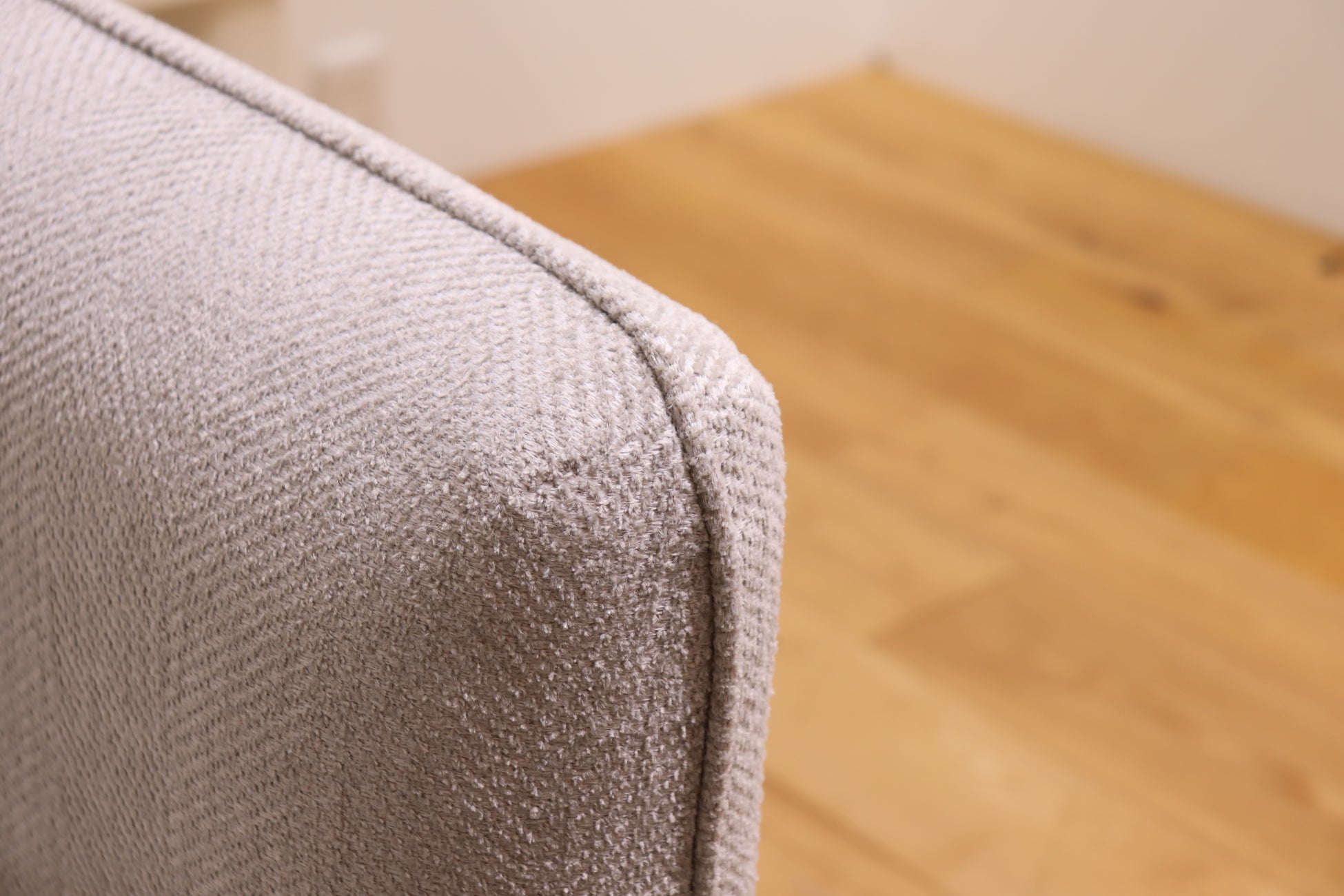 肘:パイピングがあるデザインは少しのずれや歪みで、ソファ自体の美しさも半減してしまいます。その為、立体構成で仕上がった時にいかに美しく見えるかを追求しました。特に肘の部分はヨレやズレがどうしても出てしまい、何度も改良を重ねた箇所でもあります。