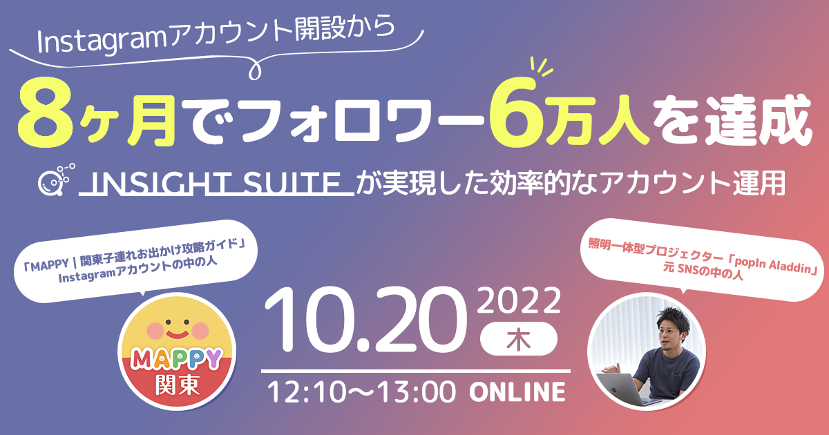 【10/20(木)無料セミナー】Instagramアカウント開設から8ヶ月でフォロワー6万人を達成! 〜Insight Suiteが実現した効率的なアカウント運用〜