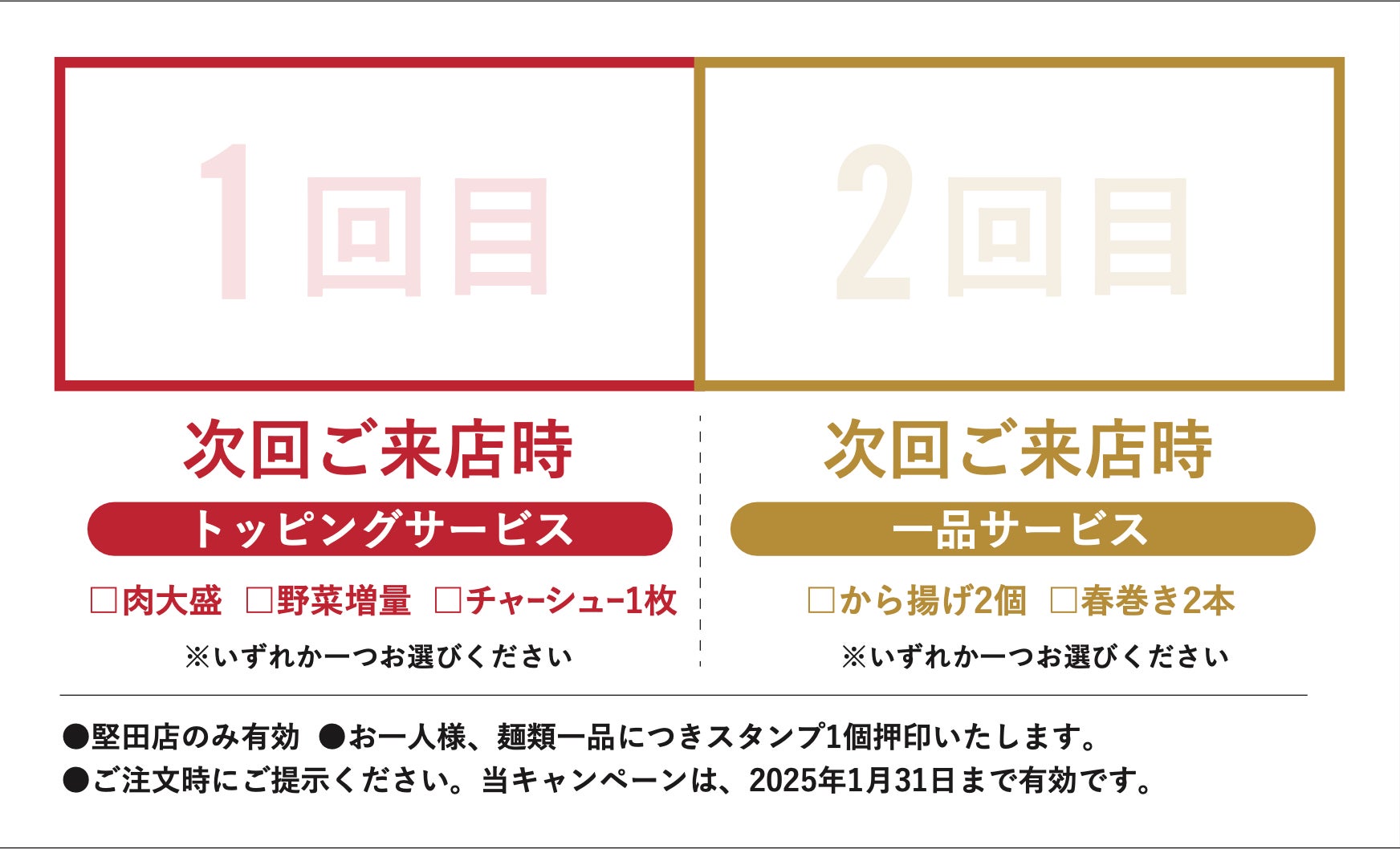 ※スタンプカードの有効期限は2025年1月31日までです。この機会にぜひ、新しい堅田店をご利用ください!