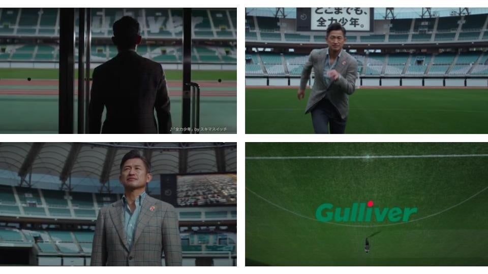 本CMは、日本サッカー界のパイオニアが放つ圧倒的な存在感とたゆまぬ努力に裏付けされた説得力を持つ三浦キャプテンと爽やかな緊張感が漂うサッカースタジアムが織りなす空気感を通じて、ガリバーの世界観である「全力で挑む姿」を表現しています。