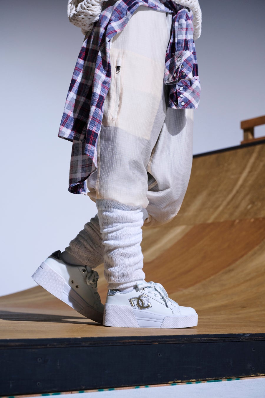 DCのモノグラム柄とオールホワイトの新色。通気性や放熱性を高め、足のムレを軽減させる通気孔を搭載しています。バルカナイズド製法のため丈夫で、しなやかな履き心地とすっきりとしたフォルムが特徴です。
