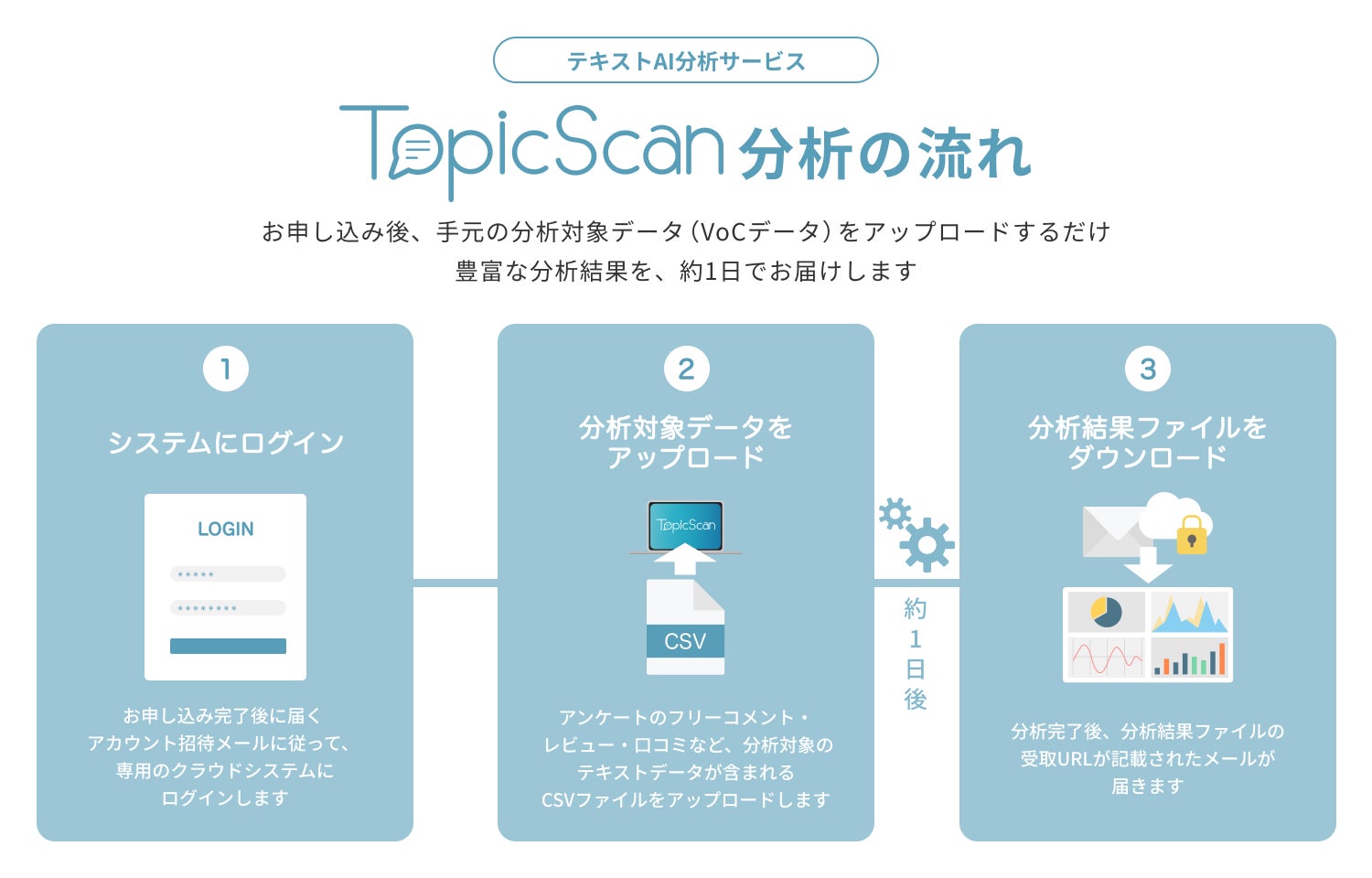 第一弾はアンケートのコメントや口コミなどをAIが要約・分析する「TopicScan™️(トピックスキャン)」をリリース