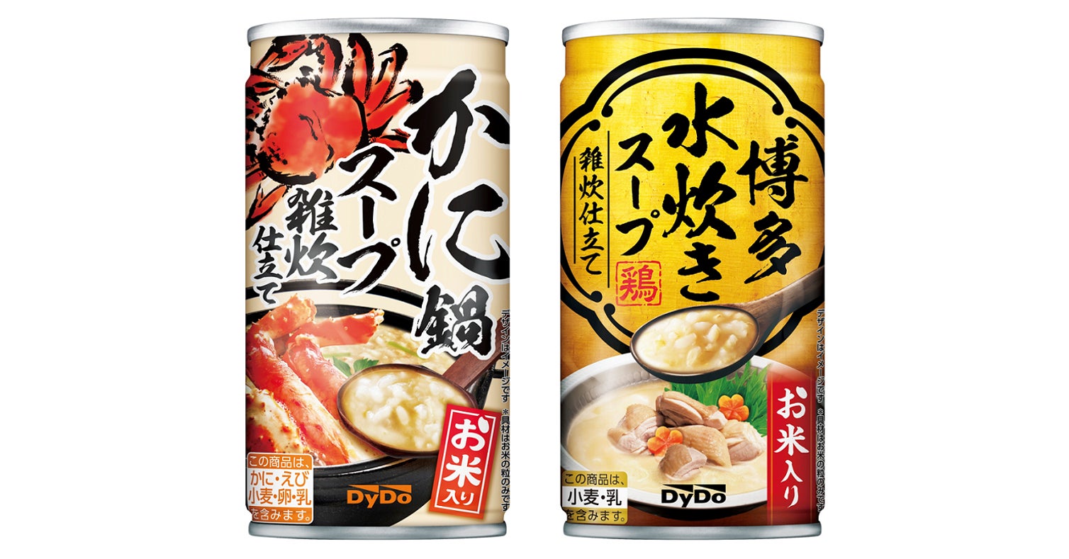冬の小腹満たし!お米入り缶スープ飲料2品が新登場濃厚なおいしさ、こころもからだも温まる!「かに鍋スープ 雑炊仕立て」「博多水炊きスープ 雑炊仕立て」新発売