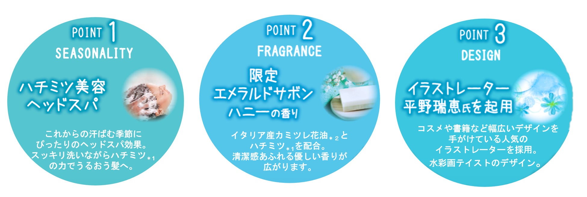 サボンシリーズはエメラルドサボンハニーの香りを採用しており、清潔感あふれる爽やかな香りとなっております。