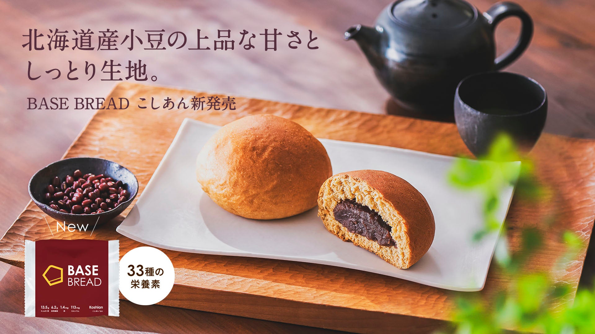 「かんたん・おいしい・からだにいい」をコンセプトに、1食(2袋)で1日に必要な33種類の栄養素がとれる完全栄養の「BASE BREAD」シリーズ。今回新たにラインナップに加わるのは、北海道産小豆を使用したなめらかで上品な甘みが特徴のこしあんを、しっとりとした生地で包み込んだあんぱんです。
