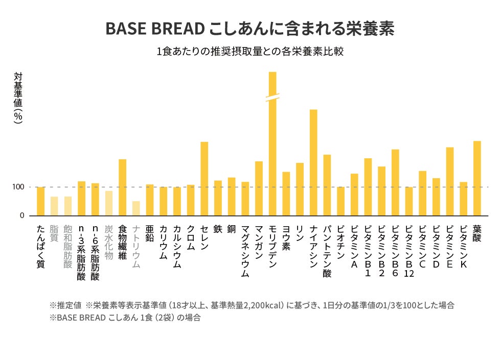 世界初*1の完全栄養*2の主食を開発・販売するベースフード株式会社(本社:東京都目黒区、代表取締役:橋本舜、https://basefood.co.jp)は、1食に必要な33種類の栄養素がすべてとれる完全栄養パン*4「BASE BREAD」シリーズから「BASE BREAD こしあん」を、2024年7月9日(火)よりベースフード公式HPオンラインショップ(https://shop.basefood.co.jp/)、他ECサイト、取扱販売店にて順次新発売します。