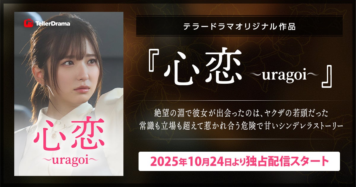 株式会社テラーノベル(本社:東京都港区、代表取締役社長:蜂谷宣人)はこの度、累計DL数760万突破(※)の小説プラットフォーム「テラーノベル( https://teller.jp/ )」発の人気小説『心恋 ~uragoi~』をショートドラマ化し、「テラードラマ」( https://teller.jp/short-drama/ にて2025年10月24日より独占配信を開始します。