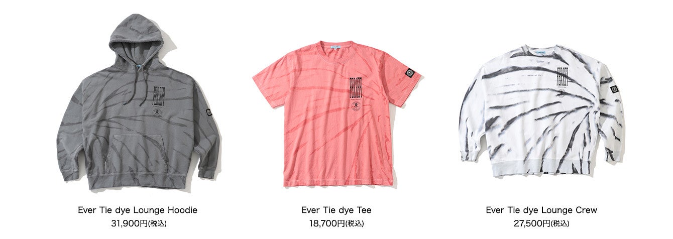 FERのロゴが対になったミラープリントが施された、タイダイ柄のラウンジスウェットシリーズは、岡山の職人によって染め上げられた繊細で手の込んだ1着で、一つひとつの異なる表情に愛着が持てるアイテムとなっています。カラーバリエーションは、RED・WHITE・GRAYの3色展開で、セットアップでの着用はもちろん、オフシーンでの幅広いスタイリングで存在感を発揮するアイテムとなっています。