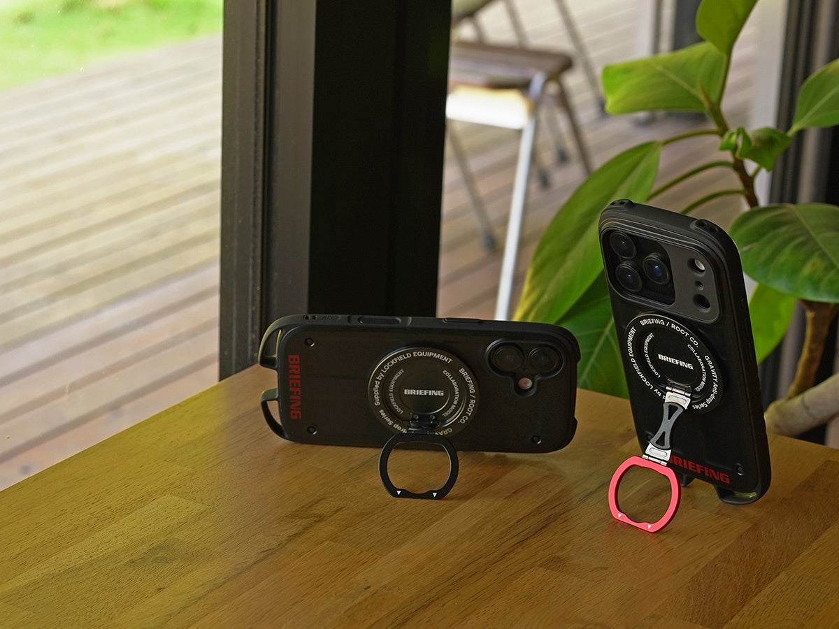 「Shock Resist Case Rugged. for iPhone」「GRAVITY MAGNETRING for MagSafe」に、BRIEFINGのロゴを配した特別仕様。