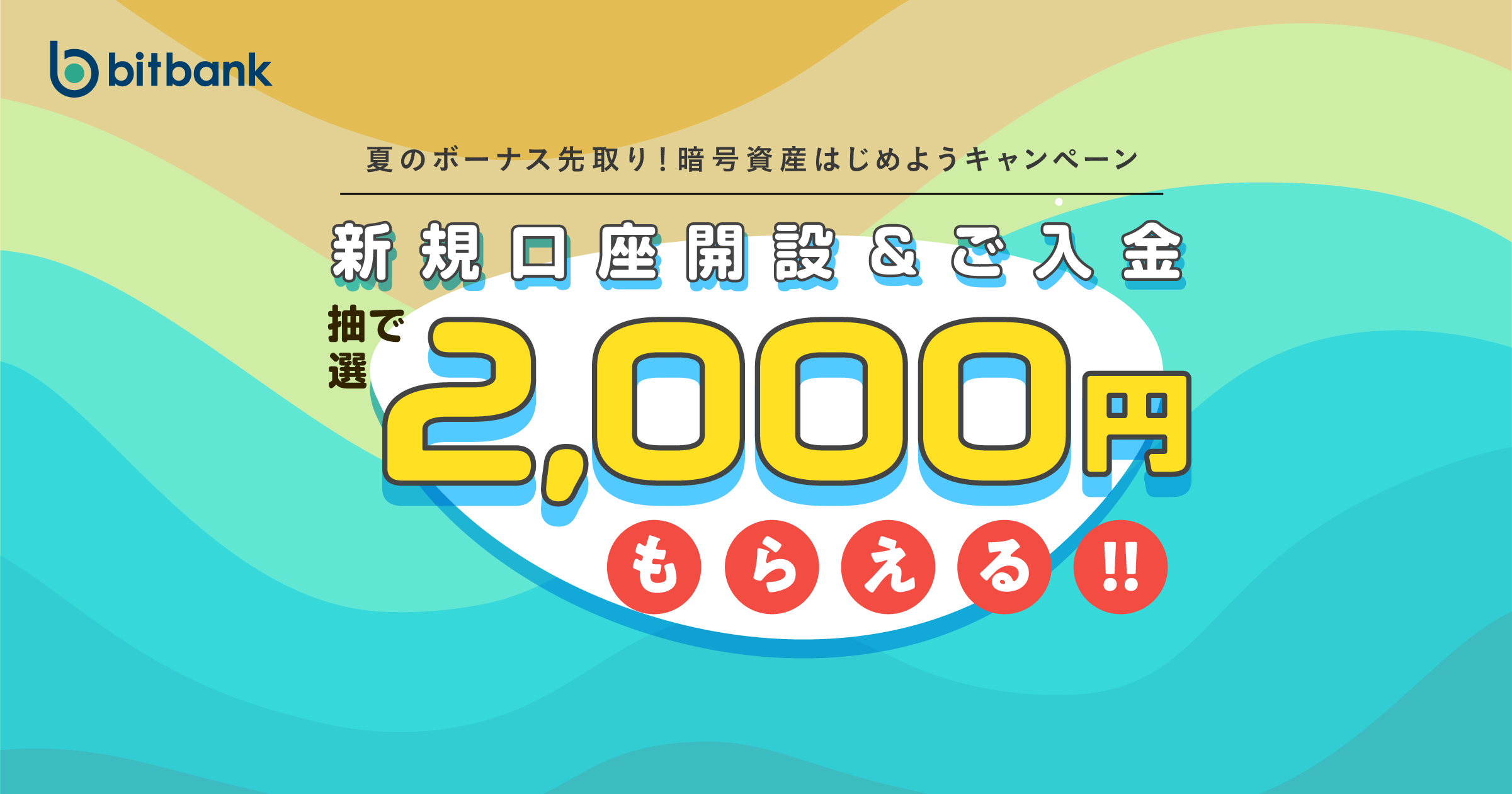 【暗号資産取引ならビットバンク】2,000円がもらえる「夏のボーナス先取り!暗号資産はじめようキャンペーン」を開催