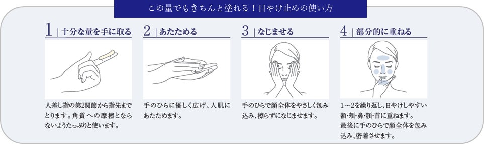 UV効果をしっかり発揮するためには、たっぷりと正しい量※3を使ってムラなく均一なUV保護膜を作ることが大切です。