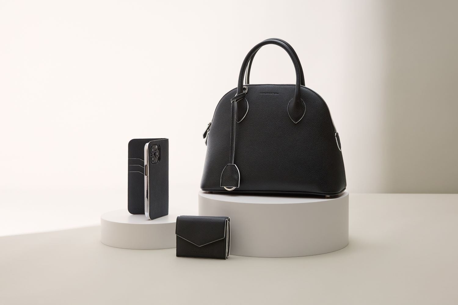 ブラックシュリンクレザーに熟練した職人の手仕事でホワイトエッジペイントを施した、シンプルながらもアクセントの効いたコレクションで、バッグ3型、ウォレット4型、iPhoneケース2型の全9型を展開いたします。