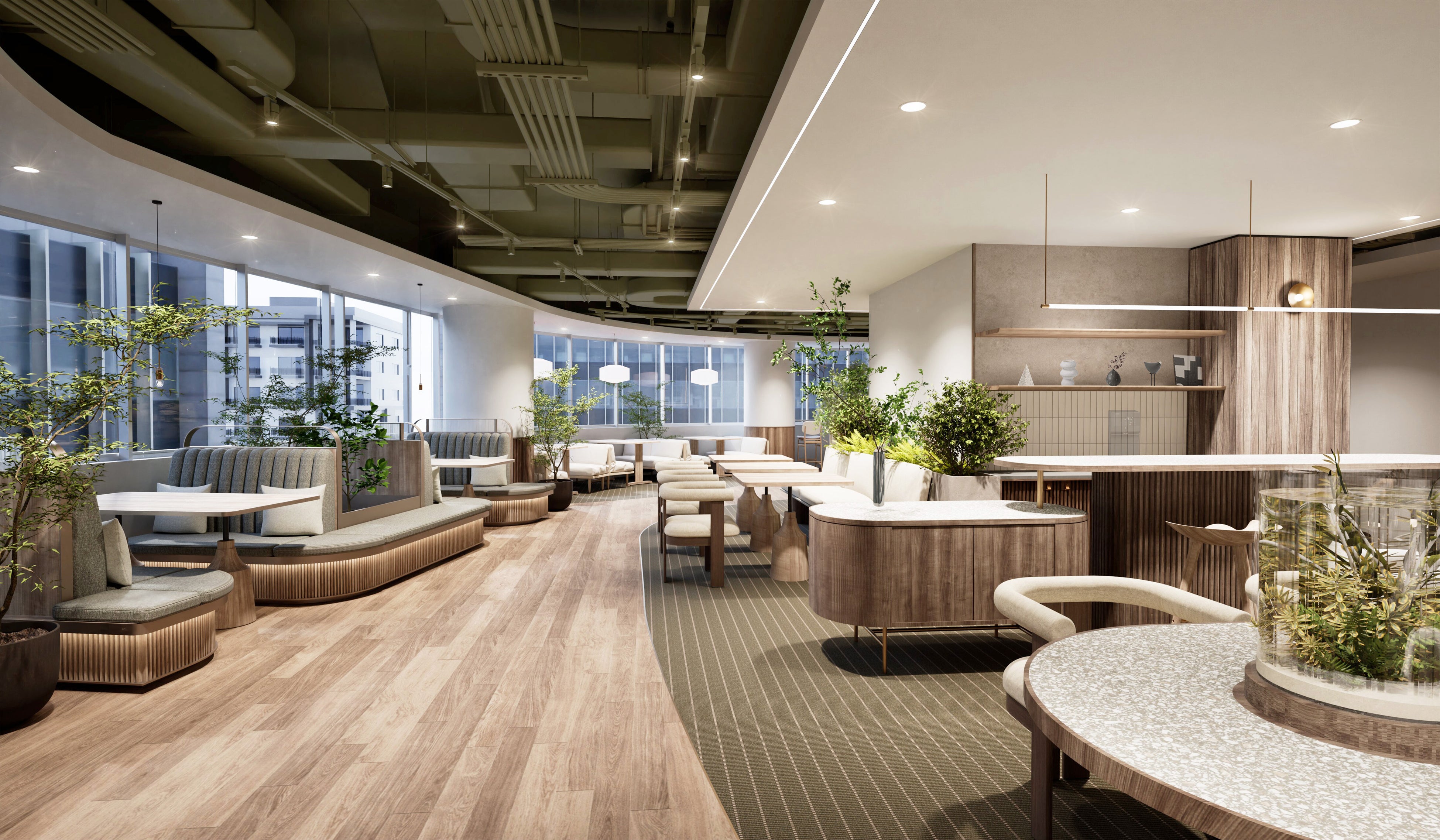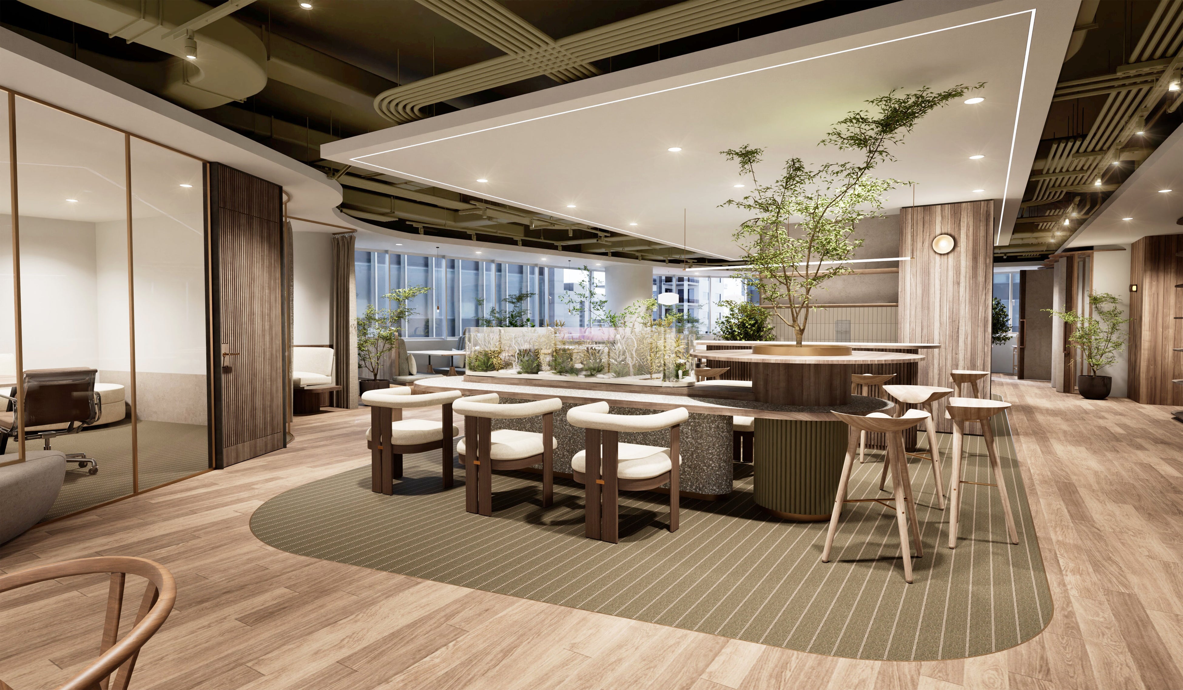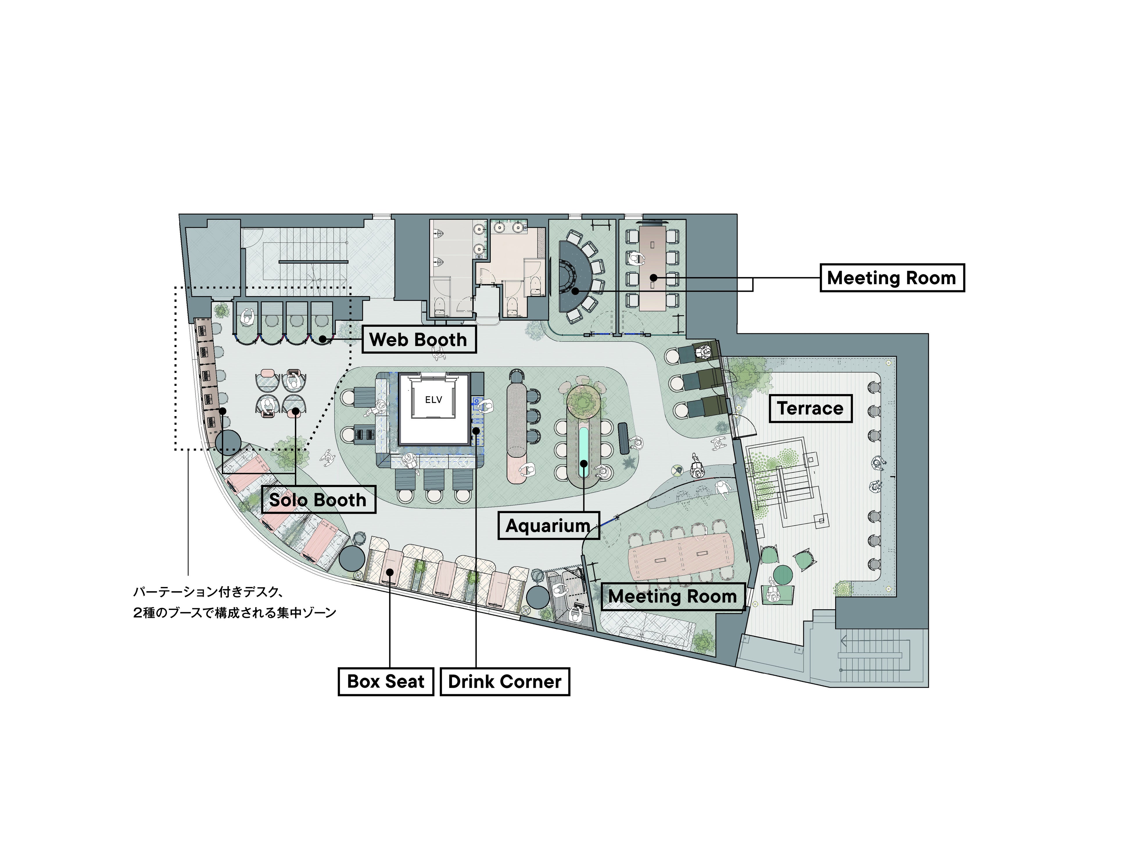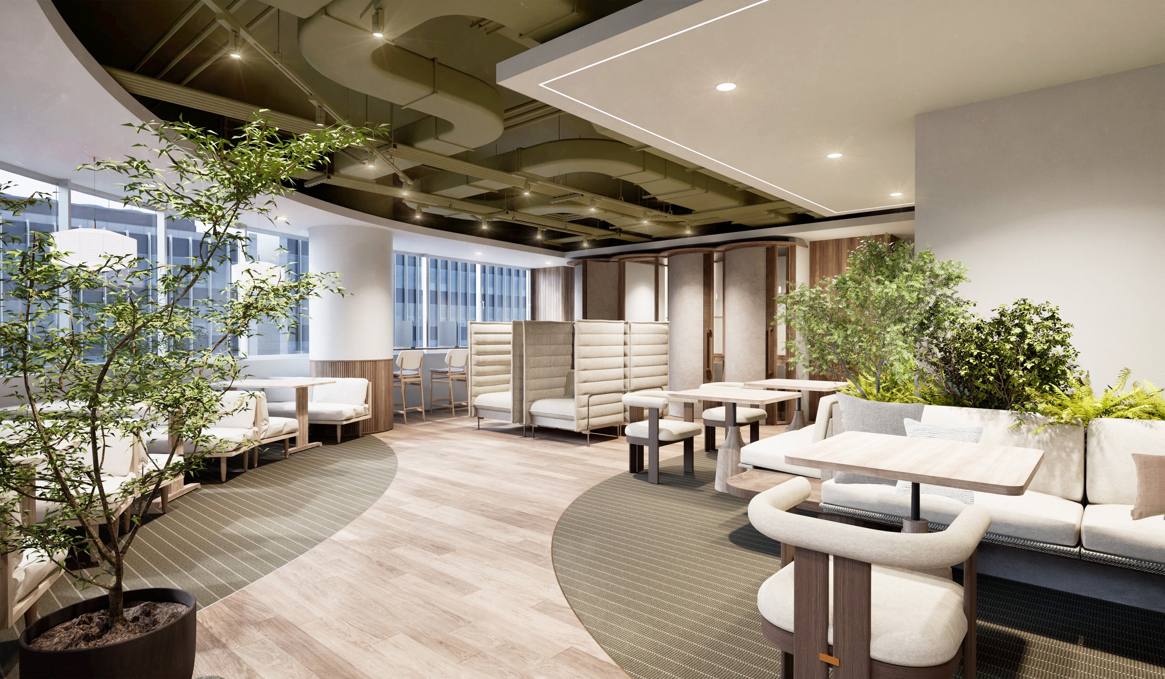 個人の働き方に寄り添いながらも、チームの創造性やつながりを育む空間設計を通じて、柔軟性と快適性の両立を図ります。