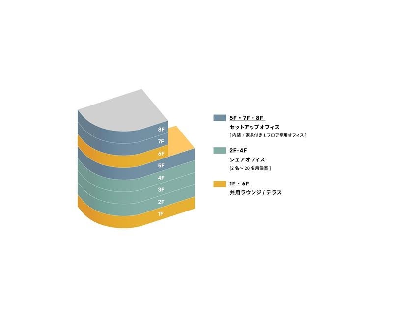 利用プランには「ルームプラン(完全個室・2~4階)」と「ラウンジプラン(法人登記可)」及び「1フロアハーフセットアップオフィス(5,7,8階)」の三種類をご用意しています。