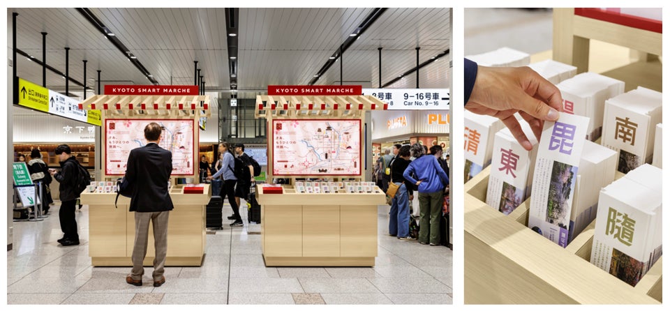 京都駅の東海道新幹線改札内に、主要観光地までの様々なアクセス方法をご提案するカードを設置した「京都スマートマルシェ」を期間限定で設置します。カードの情報を参考に、スマートで快適な京都旅行をお楽しみください。