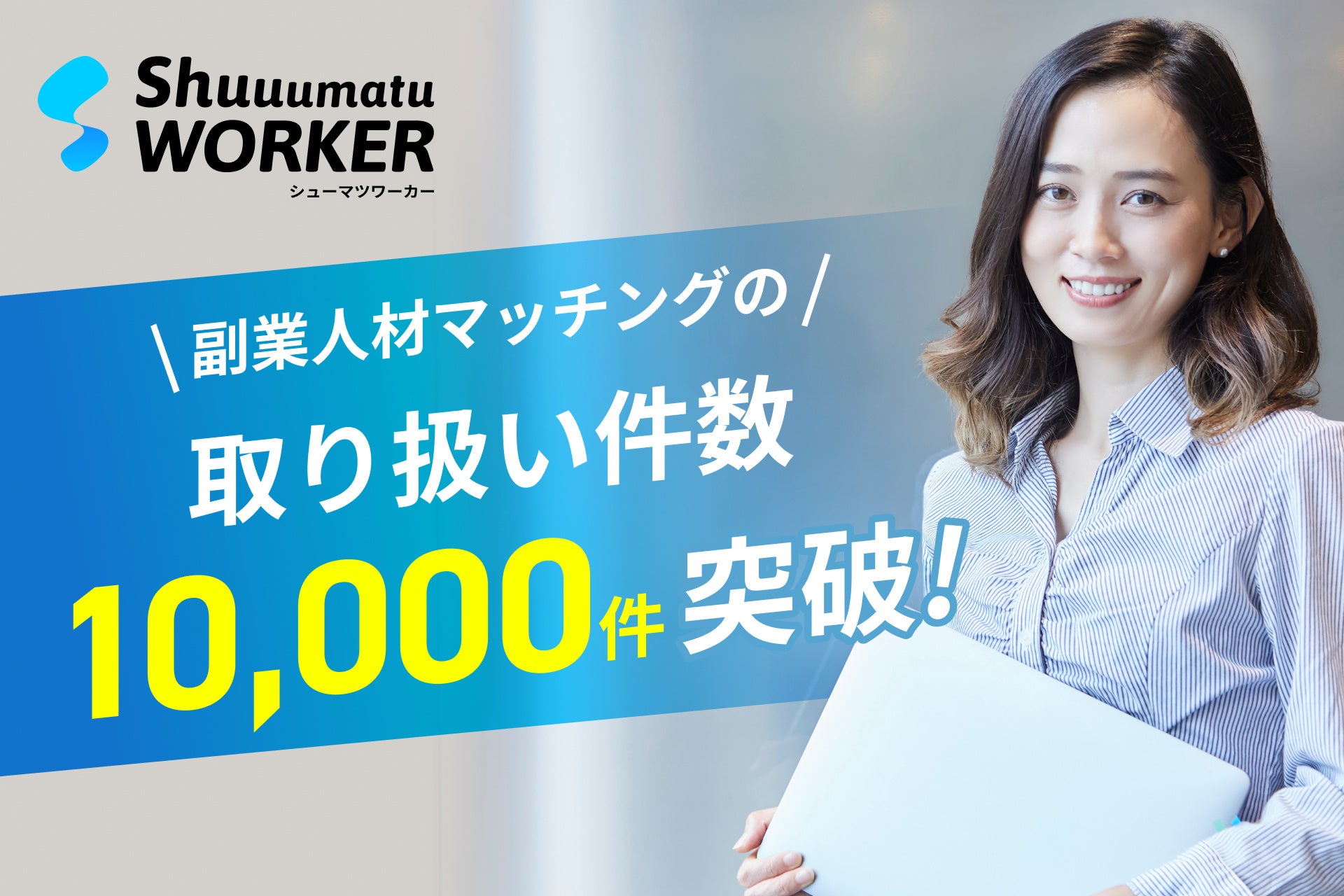 国内最大級の副業人材サービスを提供する株式会社シューマツワーカー(本社:東京都渋谷区、代表:中山 恵太、以下シューマツワーカー)は、このたび副業人材のマッチング募集における取り扱い件数が、累計1万件 (*) を突破したことを発表いたします。