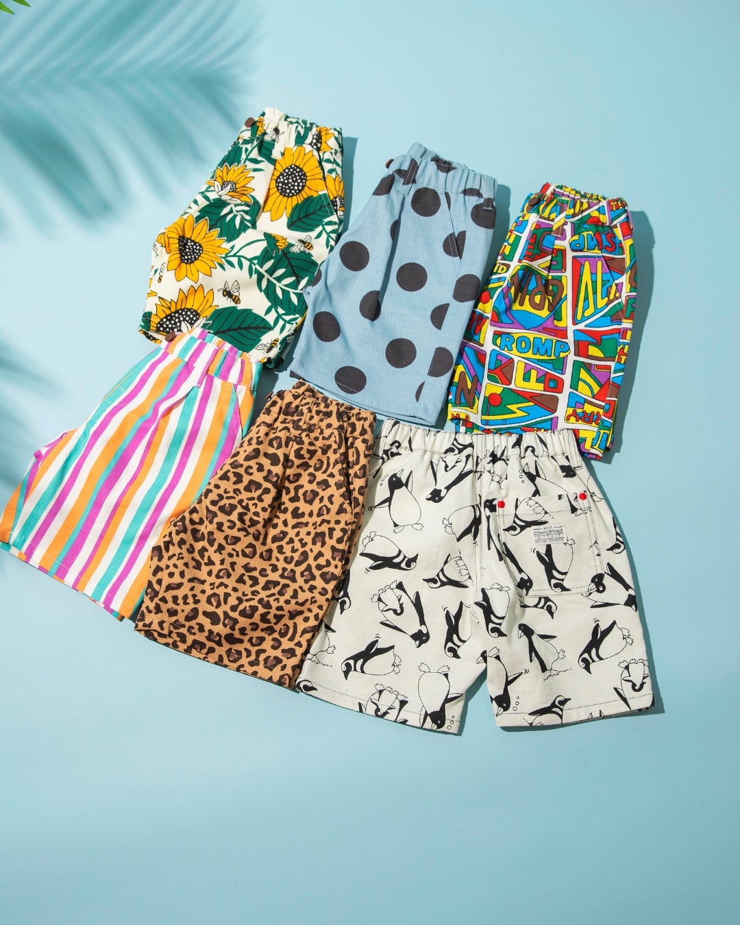 さらっとした肌触りが嬉しい総柄ボトムは6色展開。男女で使えるデザインもポイントです。