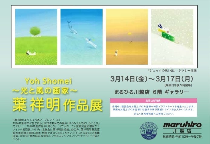 【まるひろ川越6階 ギャラリー】 メルヘンの巨匠【葉祥明 作品展】3/14(金)~3/17日(月)までの4日間限定 開催中。約40点の原画&版画は見応えあり、葉祥明の世界を堪能。