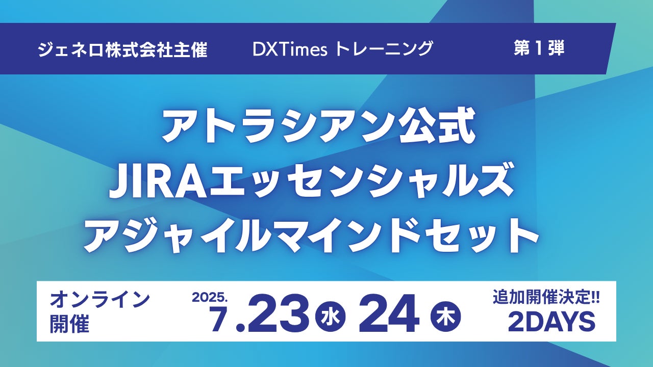 ジェネロ株式会社はアトラシアン公式トレーニング「Jira エッセンシャルズ アジャイルマインドセット」において、より多くの方にご参加いただけるよう、新たに7月の追加日程を公開し受付を開始いたしました。