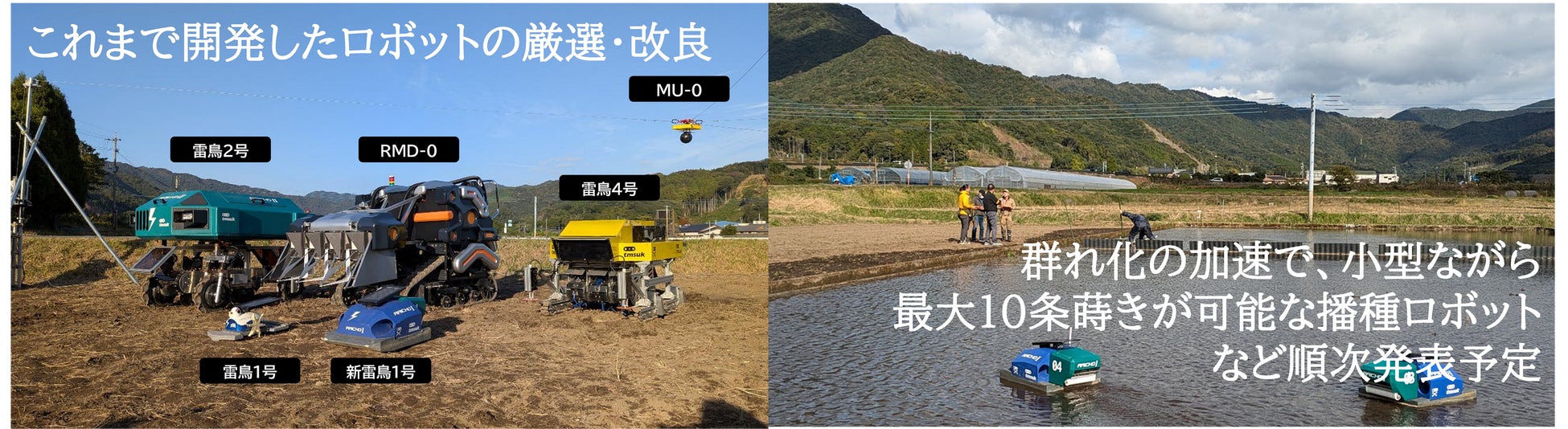 中山間地稲作に対応した害獣対策・収穫ロボットの新規開発や、播種ロボットの改良を予定