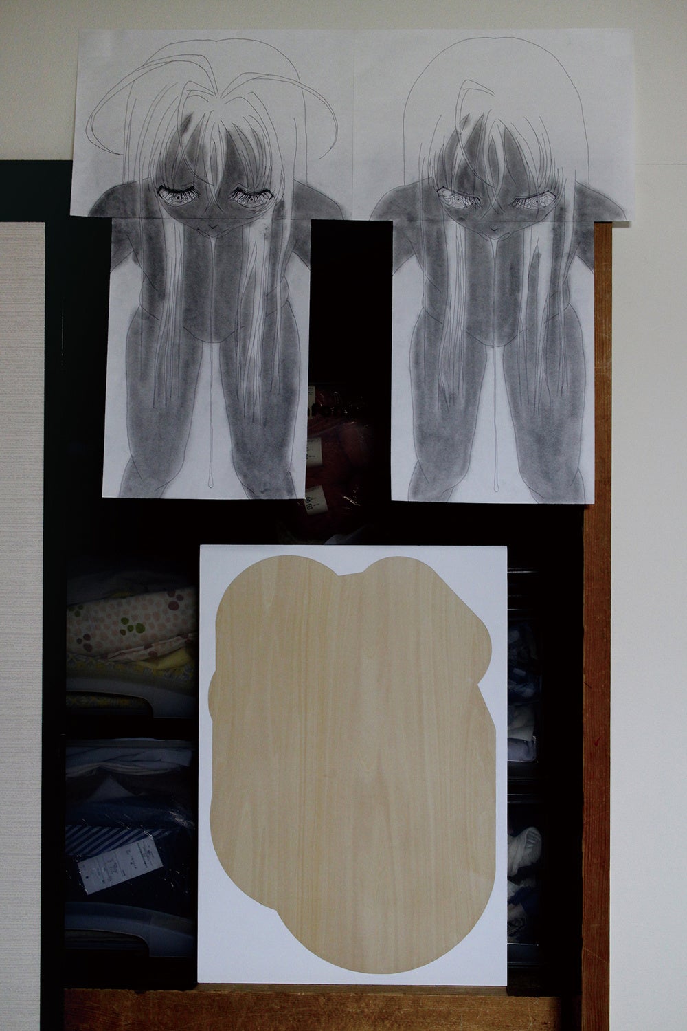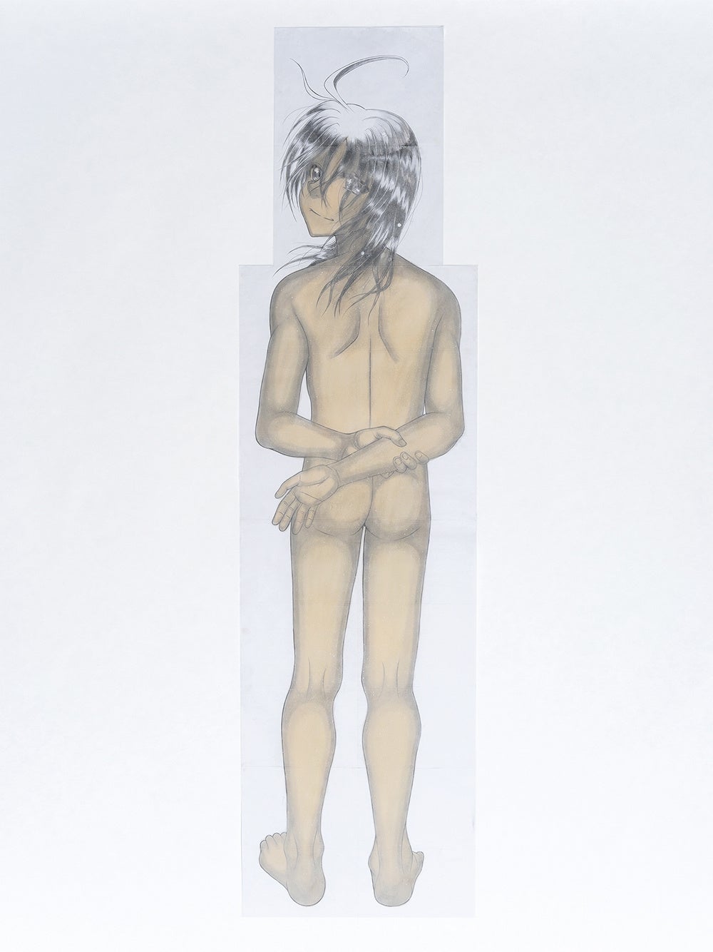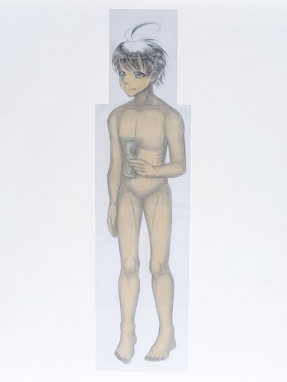 佐川さんが描く人々は視線を持っている。マンガの瞳で、大概は作品同士で見つめ合っているのだが、たまにこちらも見つめてくる。どうやら「目を見て話しなさい」ということらしい。さて、今回の人々は誰に視線を送っている? 『森野真琴』かもしれないし、私なのかもしれない。最近、佐川さんがツイッターに「マンガ絵を描くことは恥ずかしい。でも恥ずかしいことは悪ではないと思う。まだ考える余地はありまくりますが。(一部抜粋)」と書いていたことがとても印象に残っている。オタク文化・ネイティブ、というか、ナチュラルボーン・国民総アニメ絵世代というか……メタや引用の時期を過ぎ、二次創作や同人活動がアンダーグラウンドでは無い今、表現の手段としてマンガ絵を描いているという彼女の思考と矜持は、描き手としても観察者としても私が知りたいことを教えてくれる気がしている。