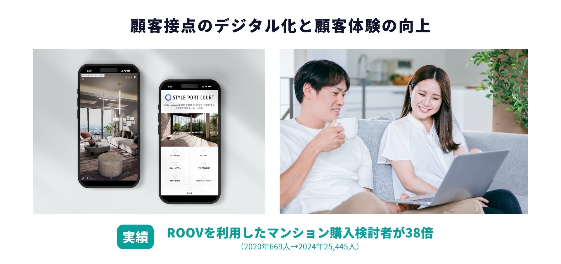 これらの数字は、新築分譲マンション販売戸数が2021年〜2024年の4年間で年平均8.5%減(株式会社不動産経済研究所調べ)とダウントレンドにある中で、マンション販売におけるDXの浸透を示しており、「ROOV」がマンションの購入検討者と事業者の両者にとって有効な手段となったことを裏付けています。