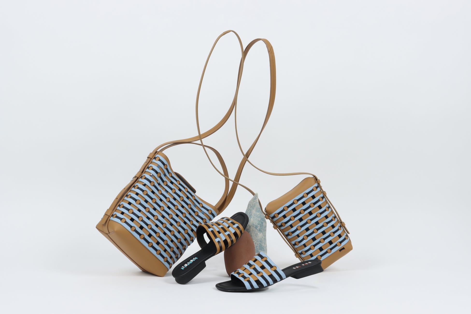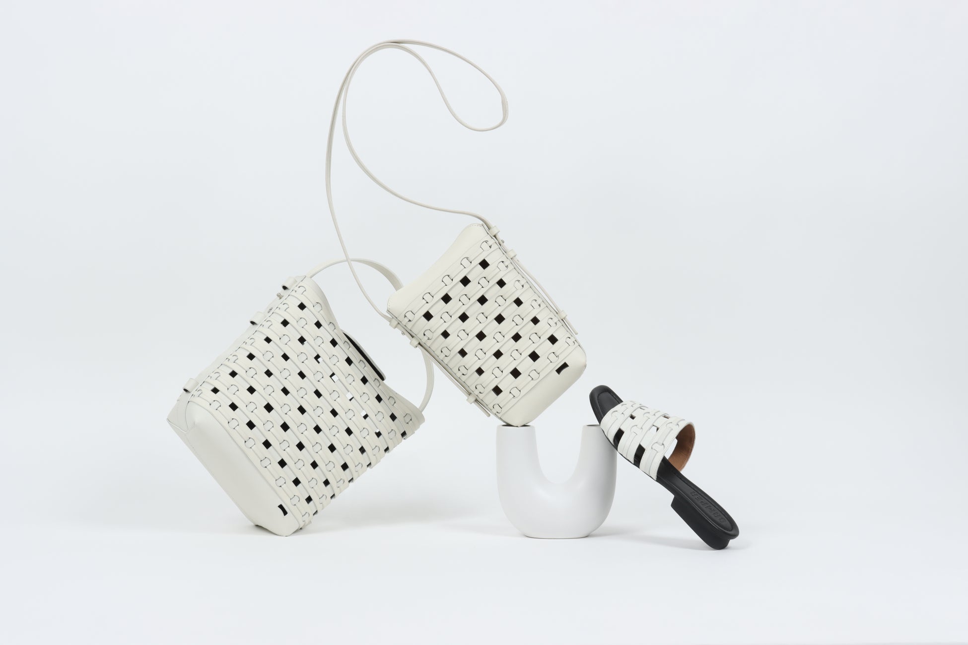 手仕事によるテクニックとカラーリングが調和した新作バッグライン「MIJAS(ミハス)」は、スプリットレザーのパンチングとメッシュのデザインをチョイス。コンパクトなポシエットと容量たっぷりのバスケット型のトートバッグで今季より展開スタート。ミニポシェットはコンパクトながら財布や携帯などを収納する縦長で、スマートなスタイリングに仕上げてくれます。程良いサイズ感のバスケット型のトートバッグは、ショルダーの付け替えや長さ調節も可能で、すっきりハンズフリーで持つこともできます。爽やかなホワイト単色、ナチュラルなベージュ×水色、ビビッドな赤が効いた赤×緑のコントラストカラーの3色展開。