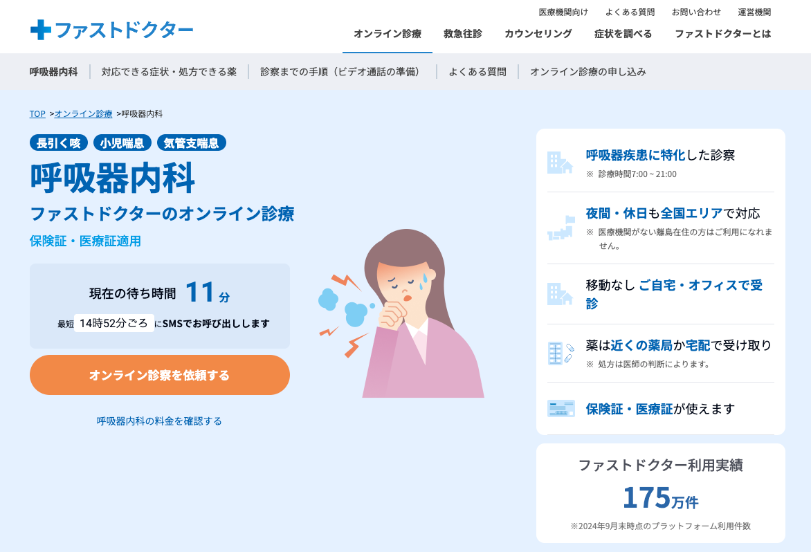 ファストドクター、オンライン診療で「呼吸器内科」を提供開始
