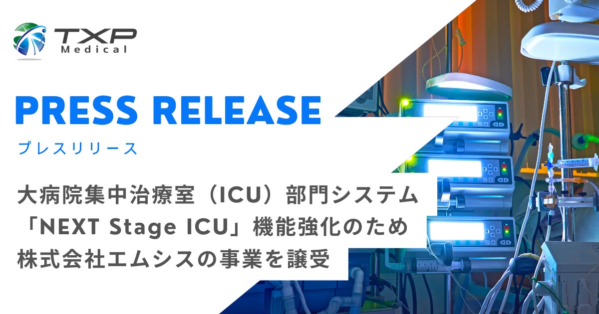 TXP Medical株式会社、大病院集中治療室(ICU)部門システム「NEXT Stage ICU」機能強化のため株式会社エムシスの事業を譲受