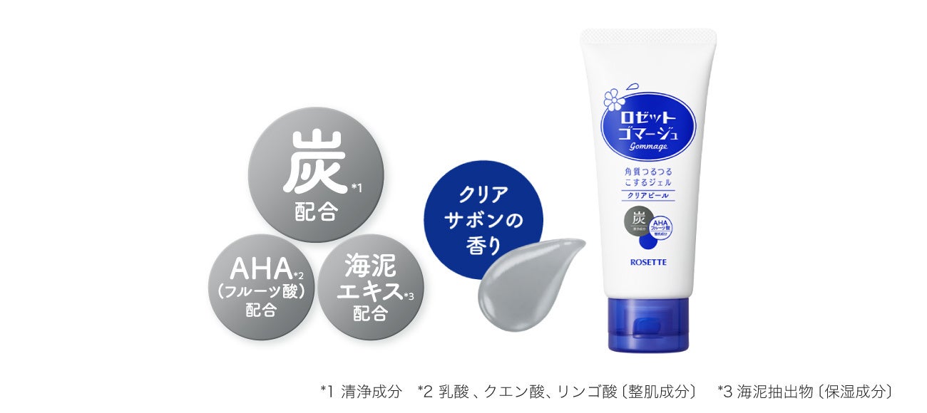 ● 炭*1×AHA*3(フルーツ酸)×海泥エキス*5配合