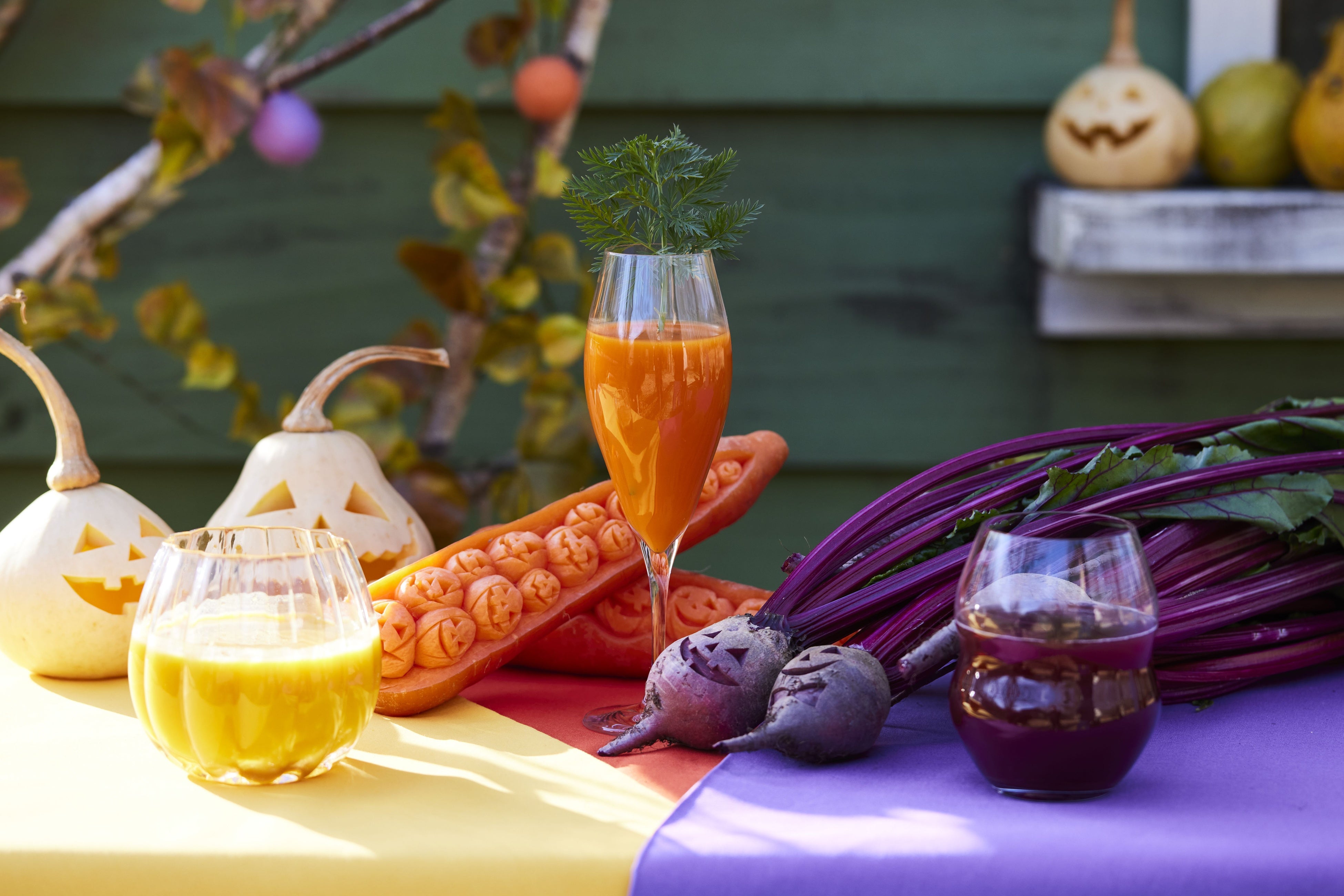カボチャ、ニンジン、ビーツを使用した3種類のベジモクテルを提供。一つ目は、カボチャの柔らかな味わいとシナモンの香り。二つ目は、ニンジンの甘みとレモンの爽やかな酸味。三つ目は、ビーツの香りの後にスパイシーな口当たりを味わえます。野菜の形をイメージした見た目にもかわいいドリンクを片手に、ライトアップされた会場で秋の夕暮れを感じながらアグロハロウィンを楽しめます。