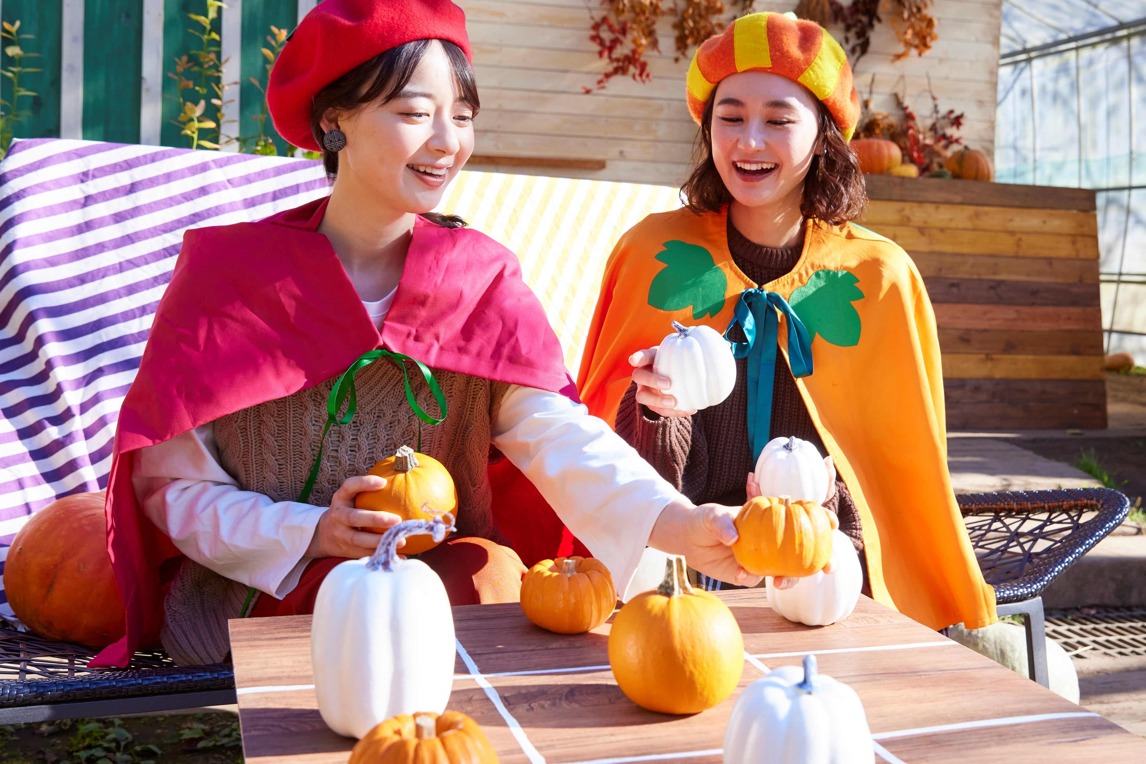 アグリガーデンには、畑で収穫できる野菜をモチーフにしたジャック・オー・ランタンやコスチュームを用意。定番のカボチャの他、今年は新たにトマト、カブ、玉ねぎの衣装が追加され、カラフルな帽子やポンチョに身を包み、会場のフォトスポットで野菜になりきって写真撮影できます。