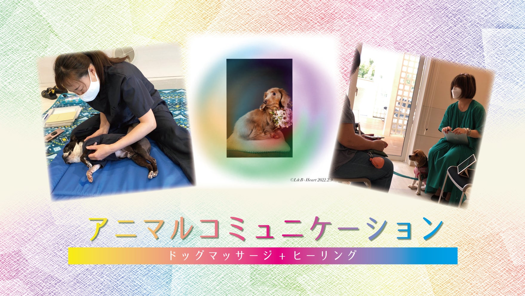 このたび開催するイベント『アニマルコミュニケーション』は、講師としてL&B+Heartの田中美暎氏を迎え、自身の愛犬にマッサージやヒーリングを行うことで、飼い主様が愛犬の言いたいことや伝えたいことを汲み取る内容となっております。愛犬との絆を深める時間となるだけでなく、その後の接し方に変化が生まれ、愛犬と飼い主様の末永い生活に役立てることができるイベントとなっております。またイベント後には、わんちゃんのオーラを描いた画像もプレゼントいたします。