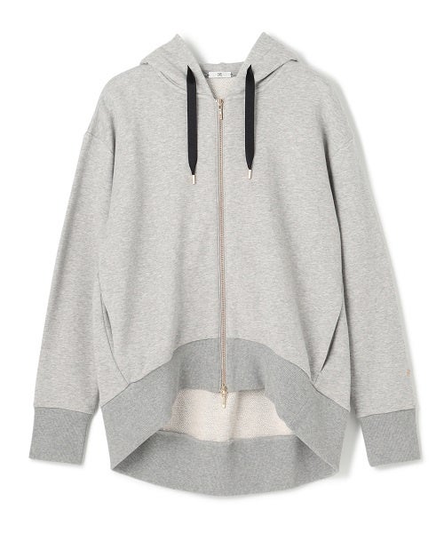 後ろのヘムラインをカーブさせた、前後差のあるパーカー。お尻をかくせてリラックス感のあるシルエットです。