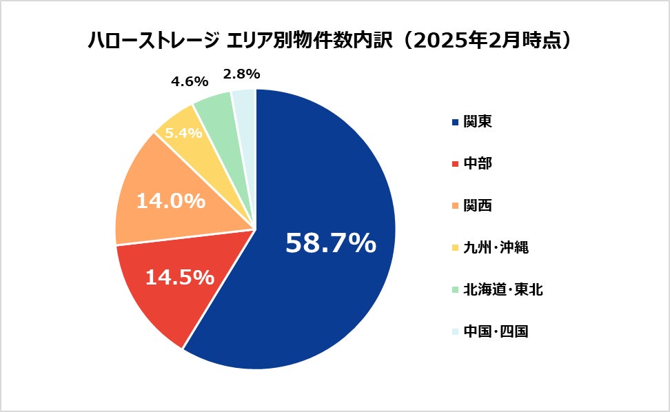 エリア別の物件数では、一都三県を含む関東エリアが最も多く58.7%を占めており、次いで中部エリア(14.5%)、関西エリア(14.0%)が続いています。(2025年2月時点)