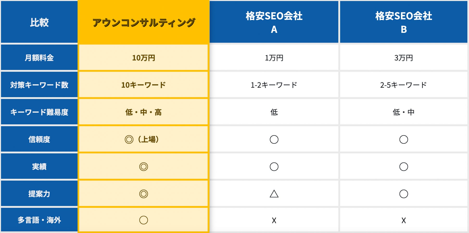 【サービス内容の他社比較】 (アウンコンサルティング調べ)