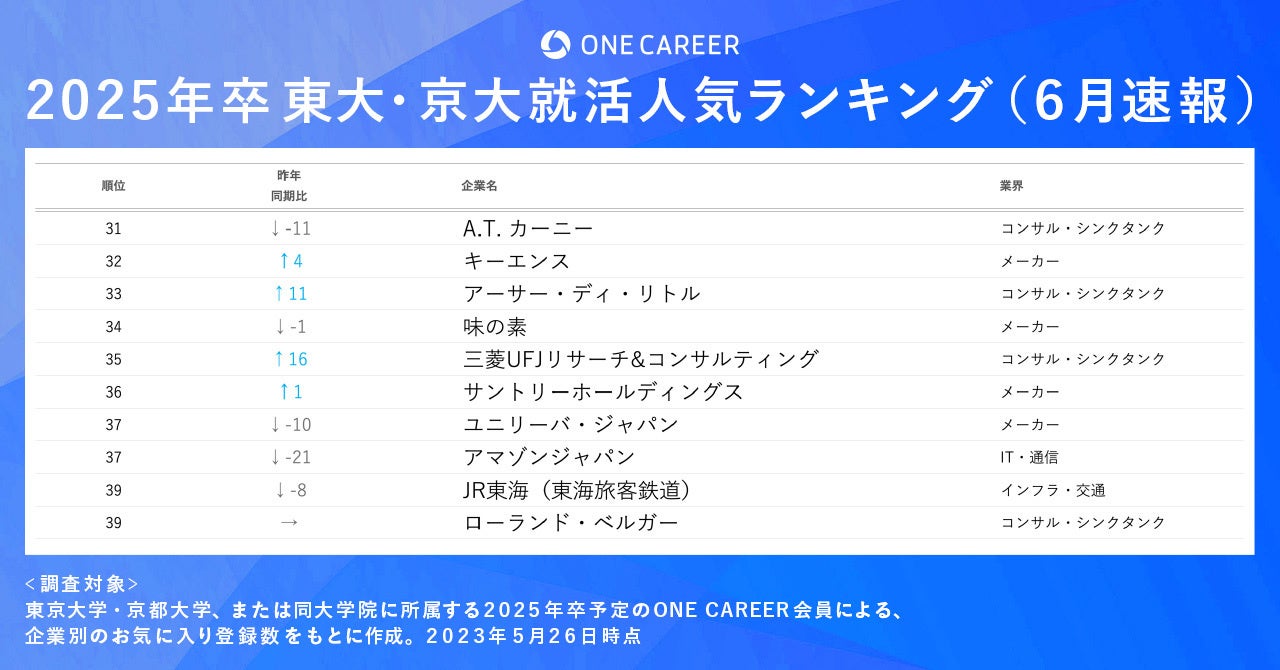 東大・京大2025年卒就活人気ランキング(6月速報)