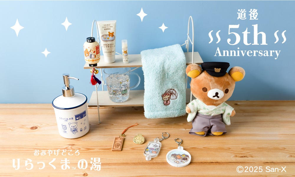 2025年7月15日(火)、「おみやげどころ りらっくまの湯」はおかげさまで5周年を迎えます。日ごろのご愛顧に感謝を込めて、素敵な5周年記念ノベルティをご用意しました。