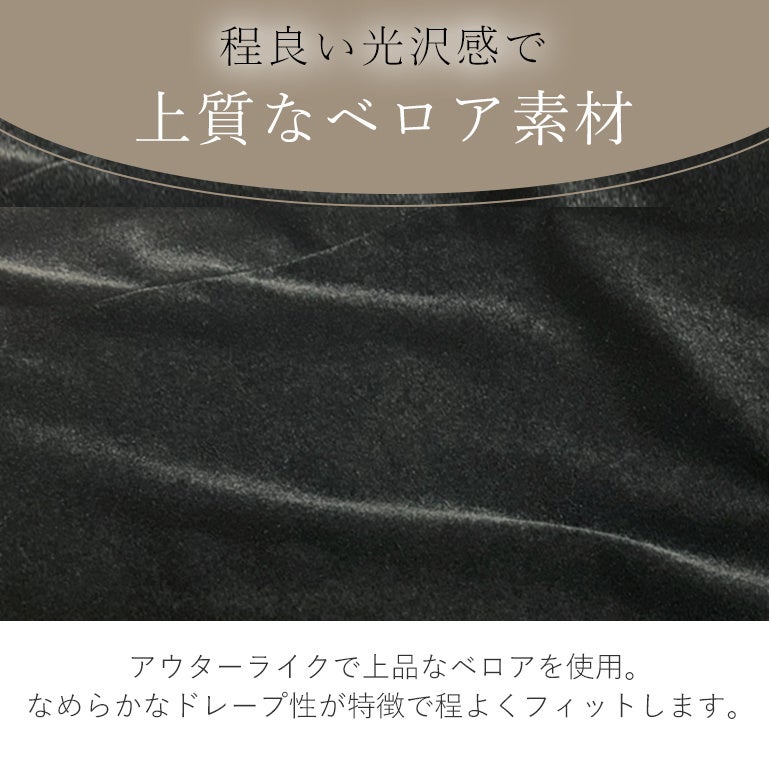身生地は、ソフトな風合いとなめらかなドレープ性が特徴の薄手のベロアを使用。伸縮性があり、着脱しやすく、身体に心地よくフィットします。