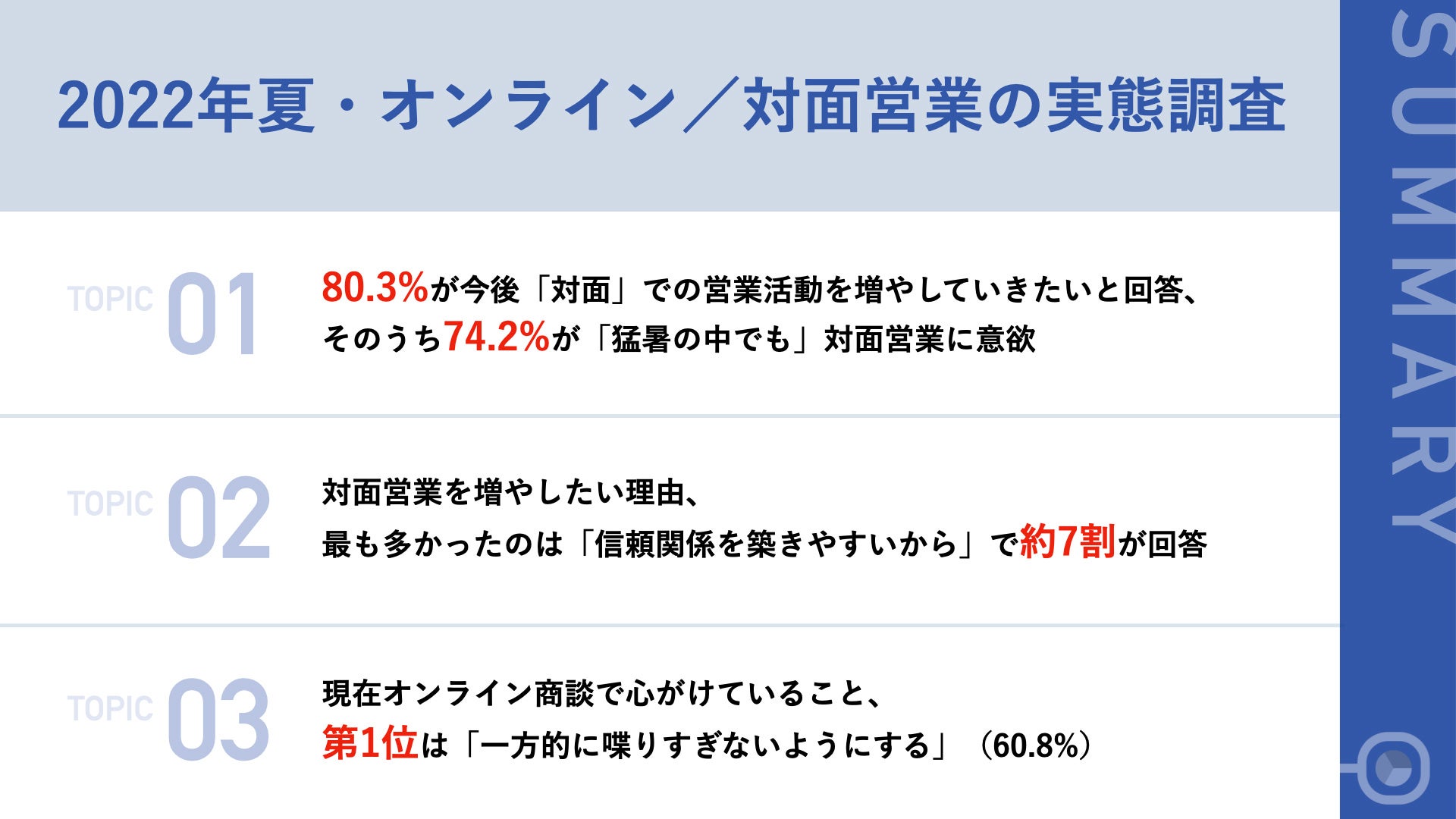 - 2022年夏の「猛暑の中でも」74.2%が対面営業に意欲