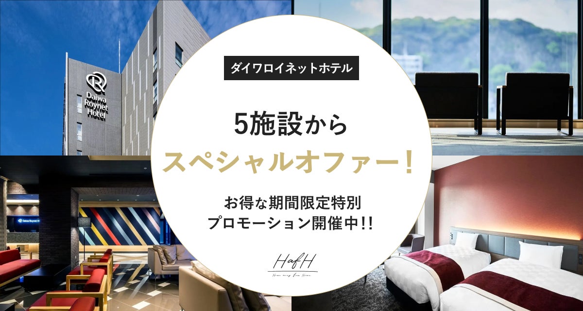 本日9月25日(月)より、下記のホテルにてHafH限定スペシャルオファーの予約を開始します。レイトチェックアウト無料や期間限定でお得なコイン数でご宿泊いただけるなど、様々な特典を提供します。