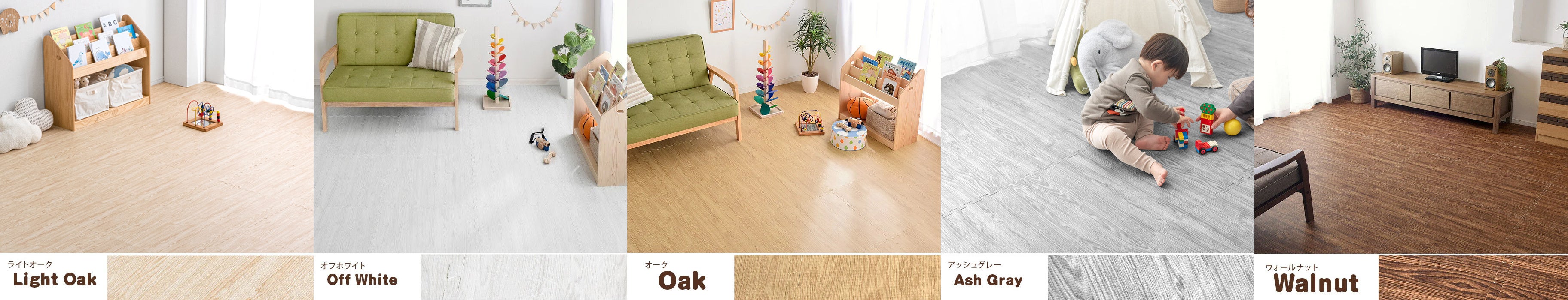今回発売開始した木目調タイプは「ライトオーク、オフホワイト、アッシュグレー、オーク、ウォールナット」の5種類のカラー展開となっており、設置する場所の内装やフローリングの色と合わせてご使用いただくことができます。