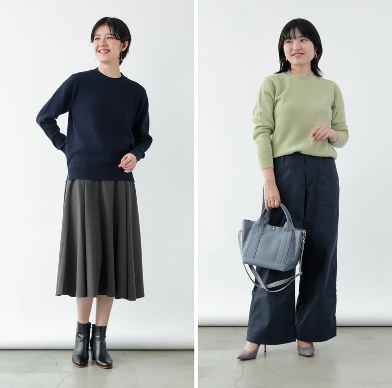 ⑤ふんわり軽くて暖かい。贅沢素材のクルーネックニット