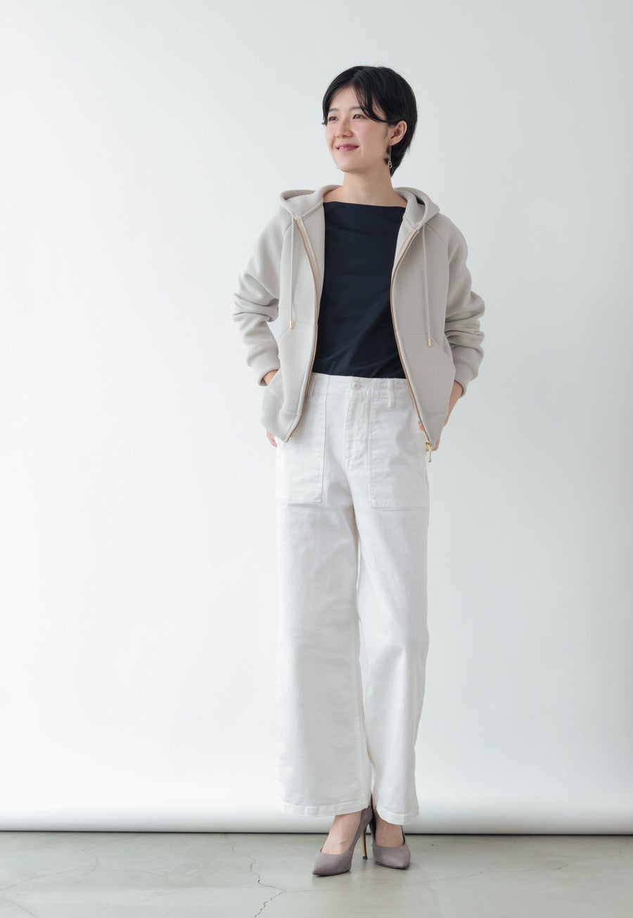 ■ファクトリエの人気No.1アウター「エアーブルゾン」と同素材を使用した、超軽量のきれいめパーカー