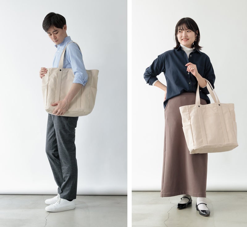 ③たくさん入れても持ちやすい。オンオフ兼用!シンプルデザインの大容量 帆布トートバッグ