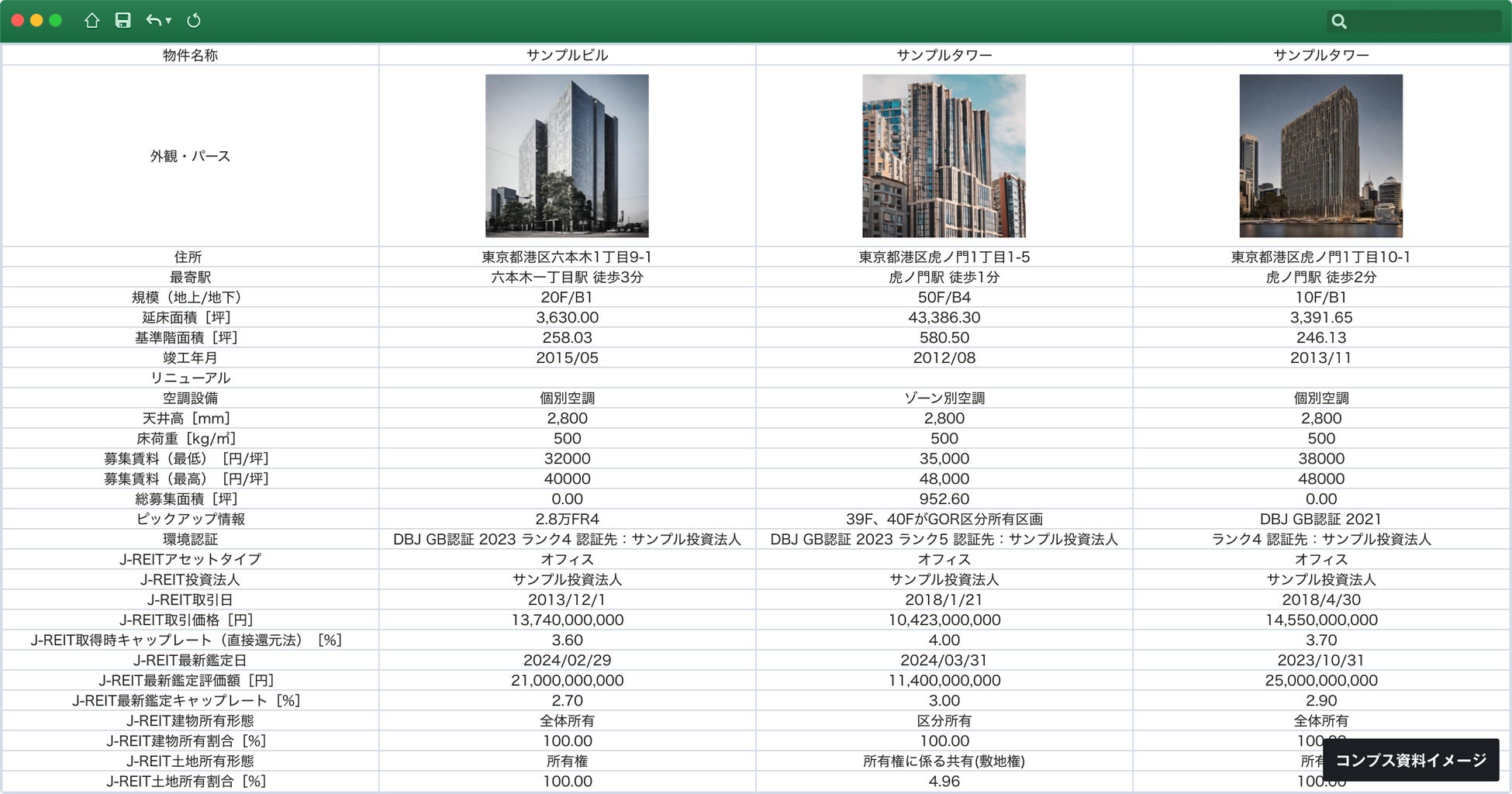 J-REITに関わる情報をコンプス資料(※2)へ物件基礎情報と合わせて表形式で出力可能に