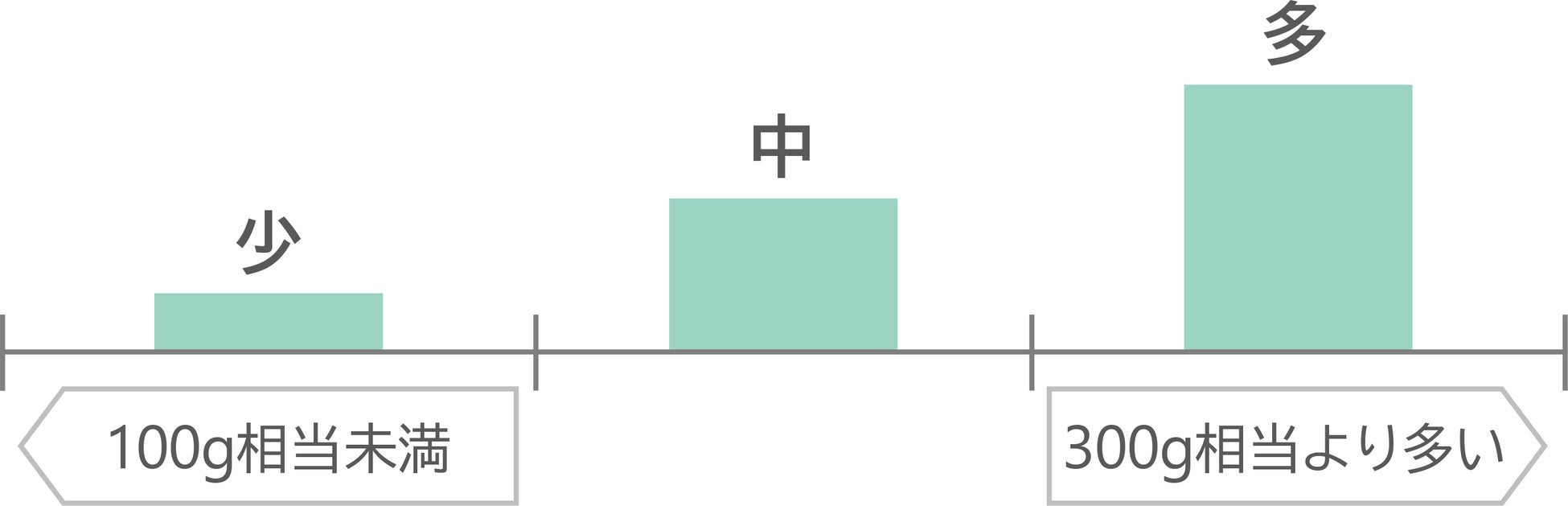 便の長さや幅、落下する時間情報などを元に、100グラム相当未満を少、100グラム相当から300グラム相当を中、300グラム相当を超えるものを多とする3つに分類します。