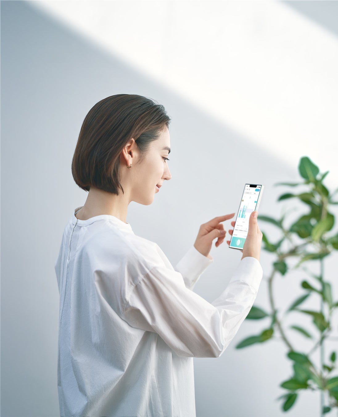 「便スキャン」は、ウォシュレットに内蔵した便スキャンセンサーで落下中の便をスキャンし、便の形(硬さ)・色・量を自動で計測する機能です。必要な操作はリモコンの個人設定ボタンを押すだけ。いつも通りにトイレを使うだけで、簡単にデータを取得できます。計測データは対応サービス「TOTOウェルネス」アプリに送信され、毎日の便の状態や傾向を分かりやすく表示。さらに最新のデータに基づいた生活の気づきとなる情報も提供します。本商品により、TOTOは無理なく自然と続けられる健康習慣「デイリーウェルネス」を提案します。