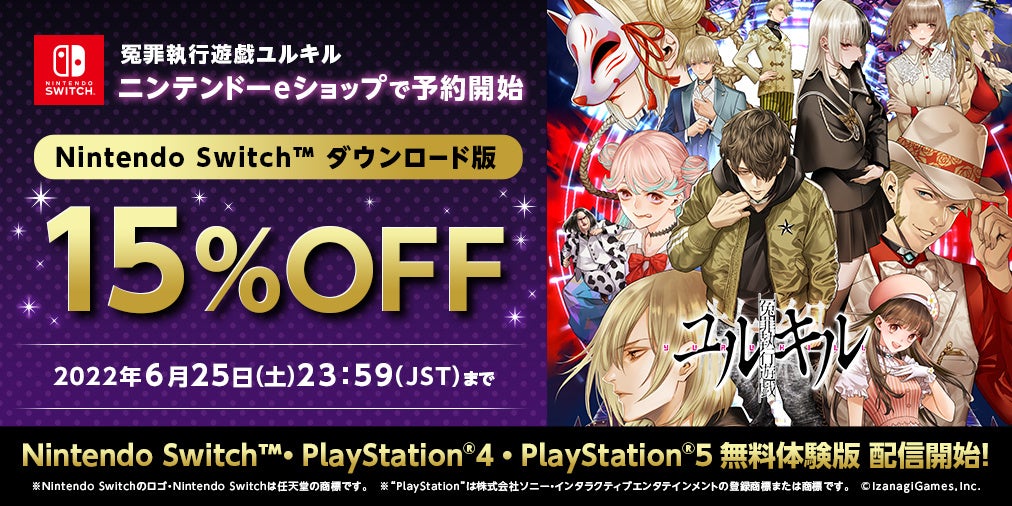 無料体験版は、ニンテンドーeショップ、My Nintendo Store、PlayStation Store各ストアの「冤罪執行遊戯ユルキル」製品紹介ページより、ダウンロードできます。