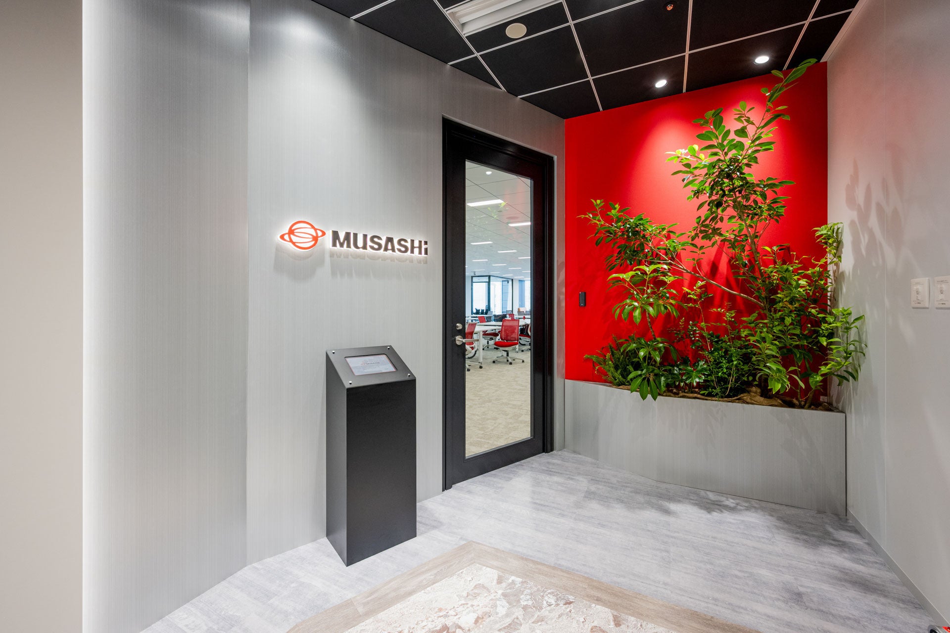また、オフィス内にはイベントや会議に利用できるステージを設置。国内外から訪れる顧客、投資家、メディア、そしてムサシの将来を担う人材との交流拠点として活用します。愛知県豊橋市に本社を置く企業としては先駆的に東京拠点を構え、日本全国はもちろん世界からの優れたグローバル人材確保にもつなげてまいります。